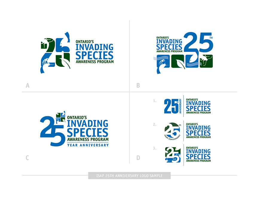 Branding for Invading Species Awareness Program that visually represents various species while signifying the milestone for the program.