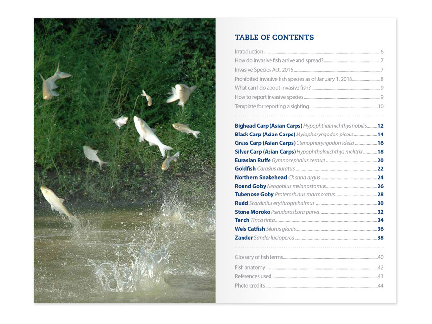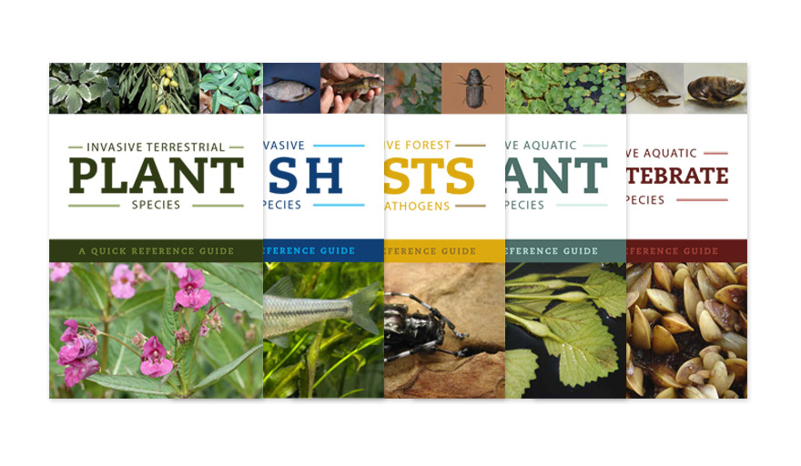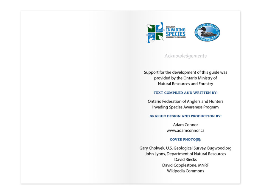 Guidebook art for OFAH educational materials. These small guides had to be concise and effective to provide pertinent information about invasive flora and fauna species found in Ontario.