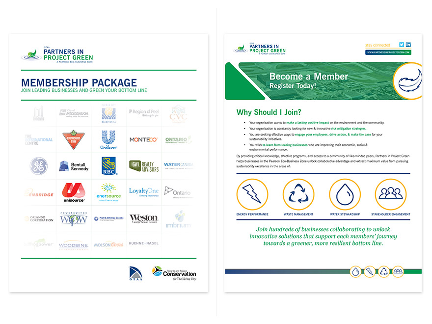 The branding graphics for all the materials needed for Partners in Project Green’s membership package. Badges, website graphics and the 10-page guide was rolled out for the first ever member focused campaign. The graphics and the subsequent materials crated, established the differences and benefits in the membership levels.
